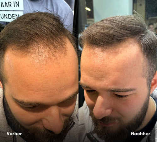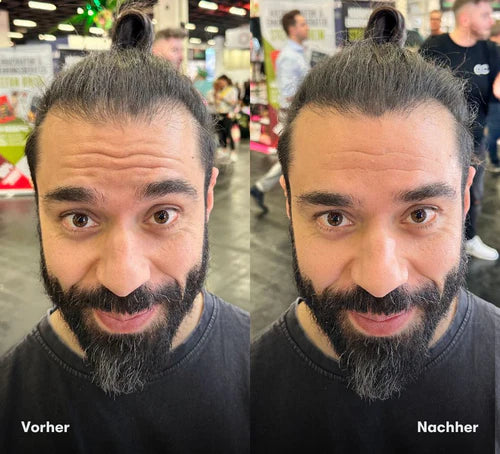 Ja. Auch Bereiche, die sehr licht oder fast kahl wirken, besitzen feine, kaum sichtbare Härchen. Die Pigmente von Glamen haften genau dort, füllen optisch auf und sorgen für eine gleichmässige, natürliche Abdeckung.