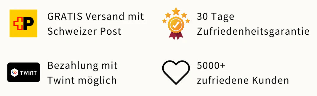😊 10.000+ zufriedene Kunden | ✅ 30-Tage Geld-zurück-Garantie | 🚚 Kostenloser Versand: CH | DE | AT | LI